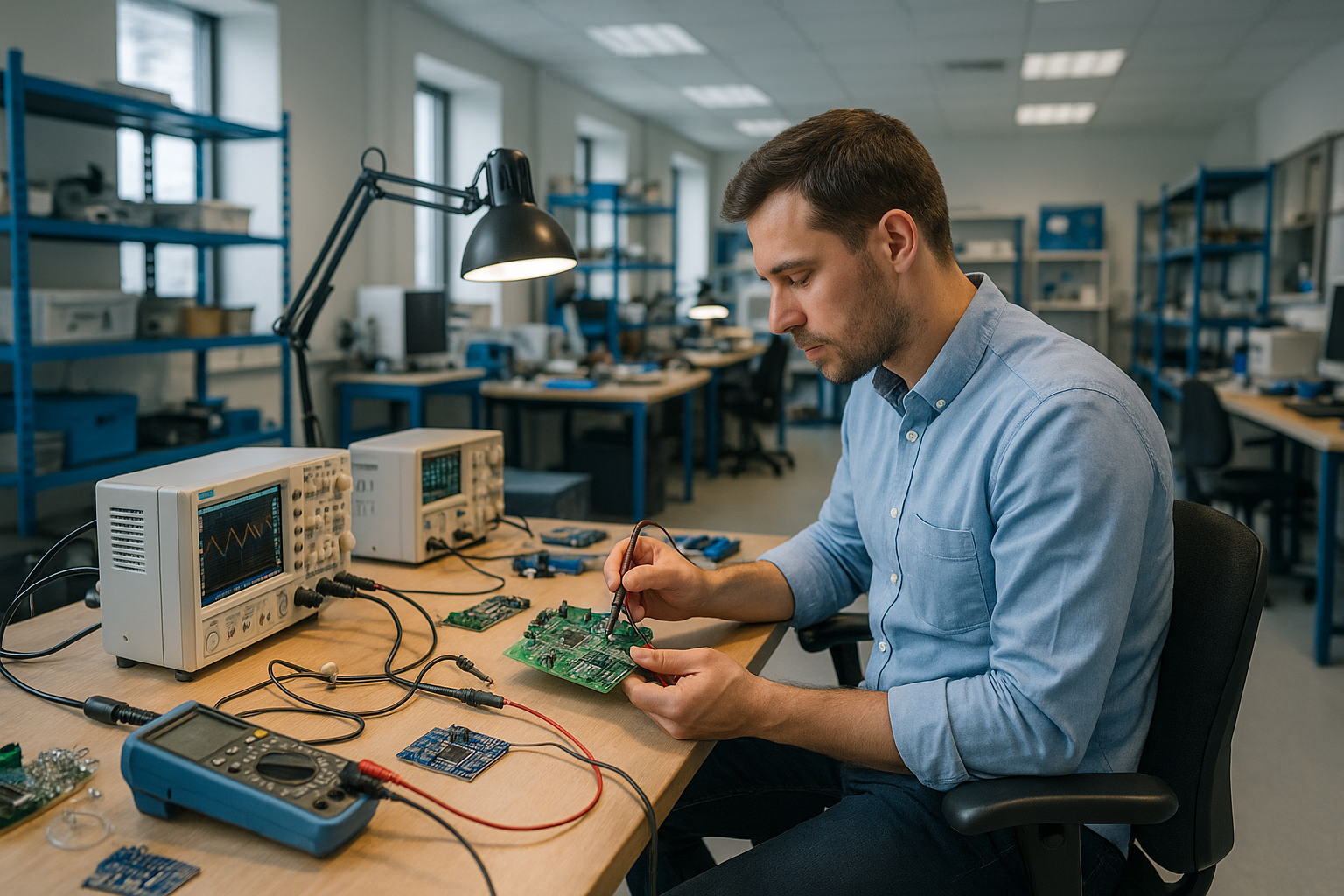 En nuestro laboratorio de electrónica, cada equipo médico que reparamos representa una vida que puede continuar funcionando con normalidad. Contamos con un espacio moderno y especializado donde nuestros técnicos trabajan con precisión y compromiso, como se aprecia en la imagen, revisando cuidadosamente placas electrónicas y utilizando instrumentos de diagnóstico avanzados. Nos dedicamos a restaurar el funcionamiento óptimo de los dispositivos médicos, asegurando calidad, seguridad y confianza en cada intervención.
